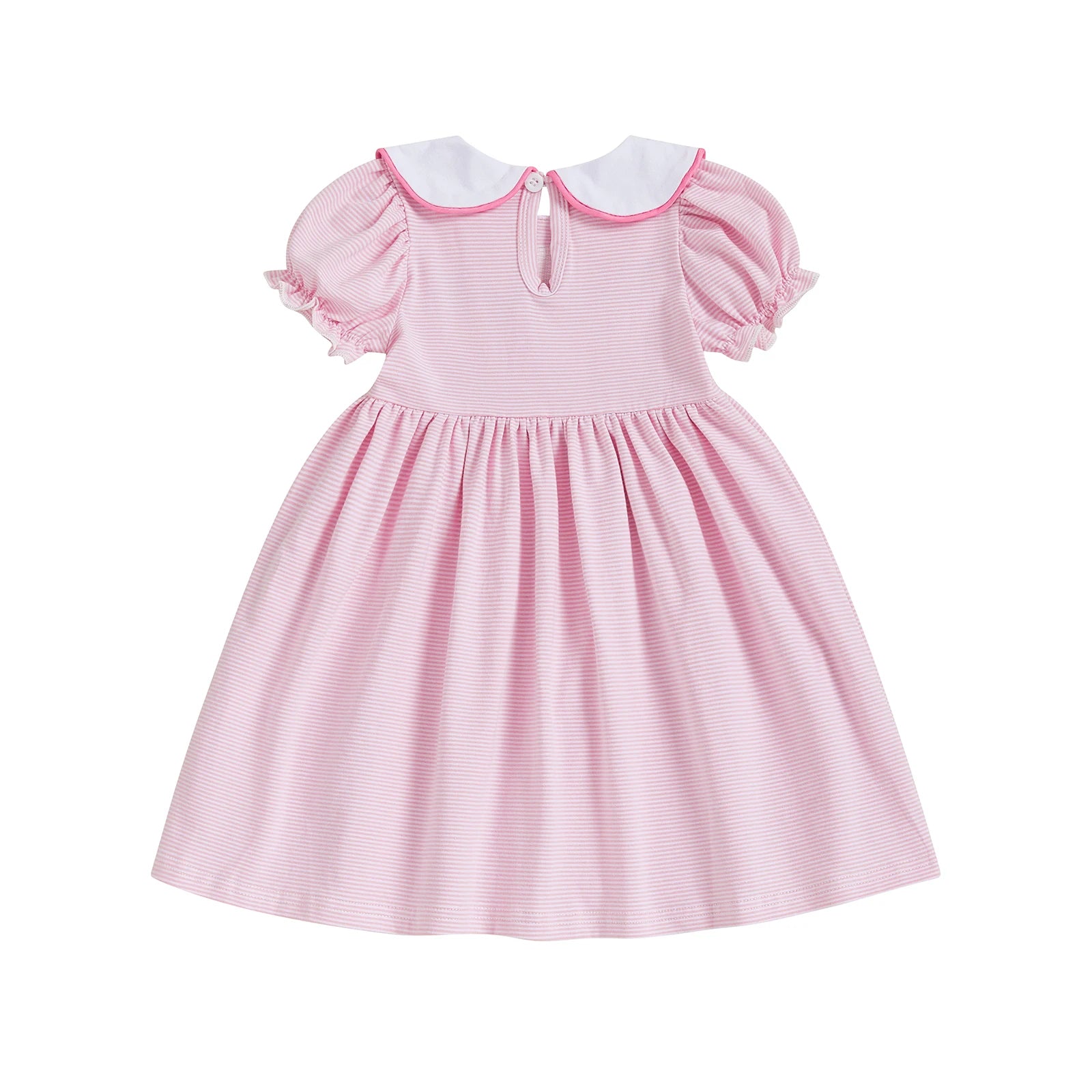 Style it with tights and shoes for a polished school-day ensemble, or pair with sneakers for casual play. This striped embroidered collar dress delivers cute, practical charm that little girls will love to wear.