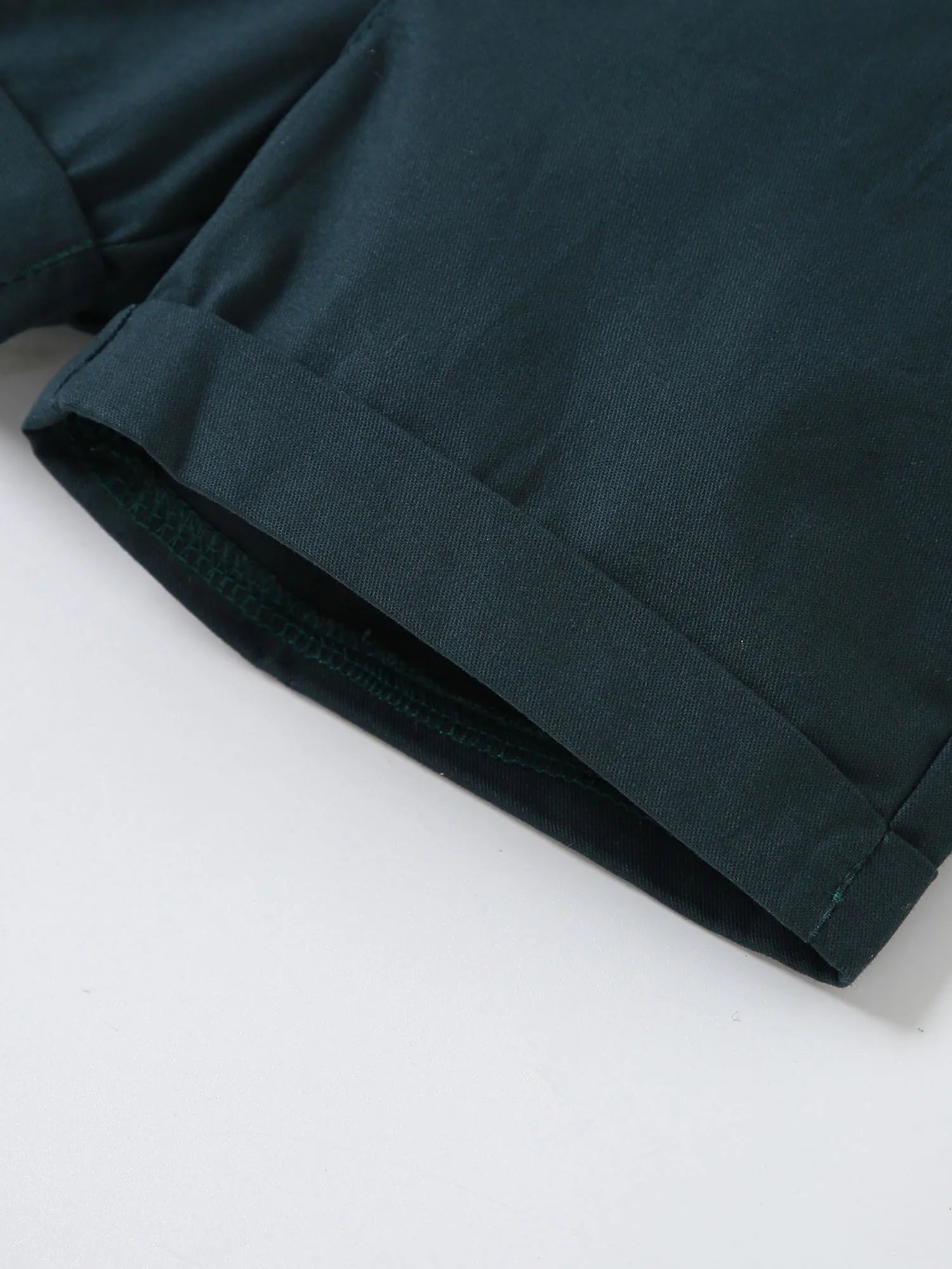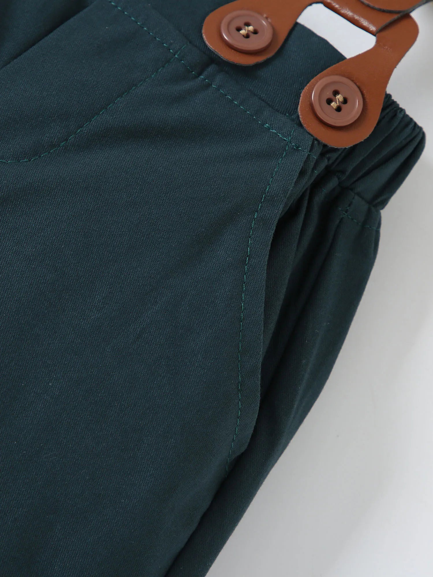As a standout in the baby boy clothing category, this outfit combines elegance with practicality. While many outfits focus solely on style, this set prioritizes both functionality and comfort. The suspender shorts not only add a fashionable flair but also provide a secure fit for active infants.