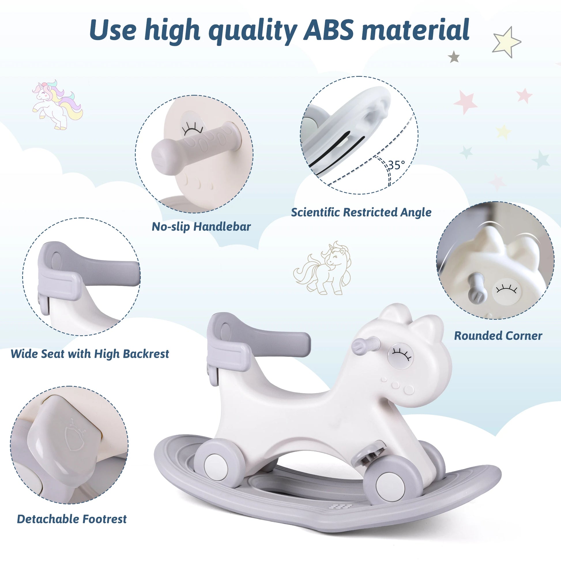 Introducing the Rocking Horse Child Safety Push Handle Rocker, the perfect ride-on toy for toddlers aged 1 to 3 years old! This innovative design combines fun and safety, making it an ideal birthday gift for both girls and boys. Crafted from high-quality ABS plastic, this rocker is durable and built to withstand hours of playtime while ensuring your child's safety.