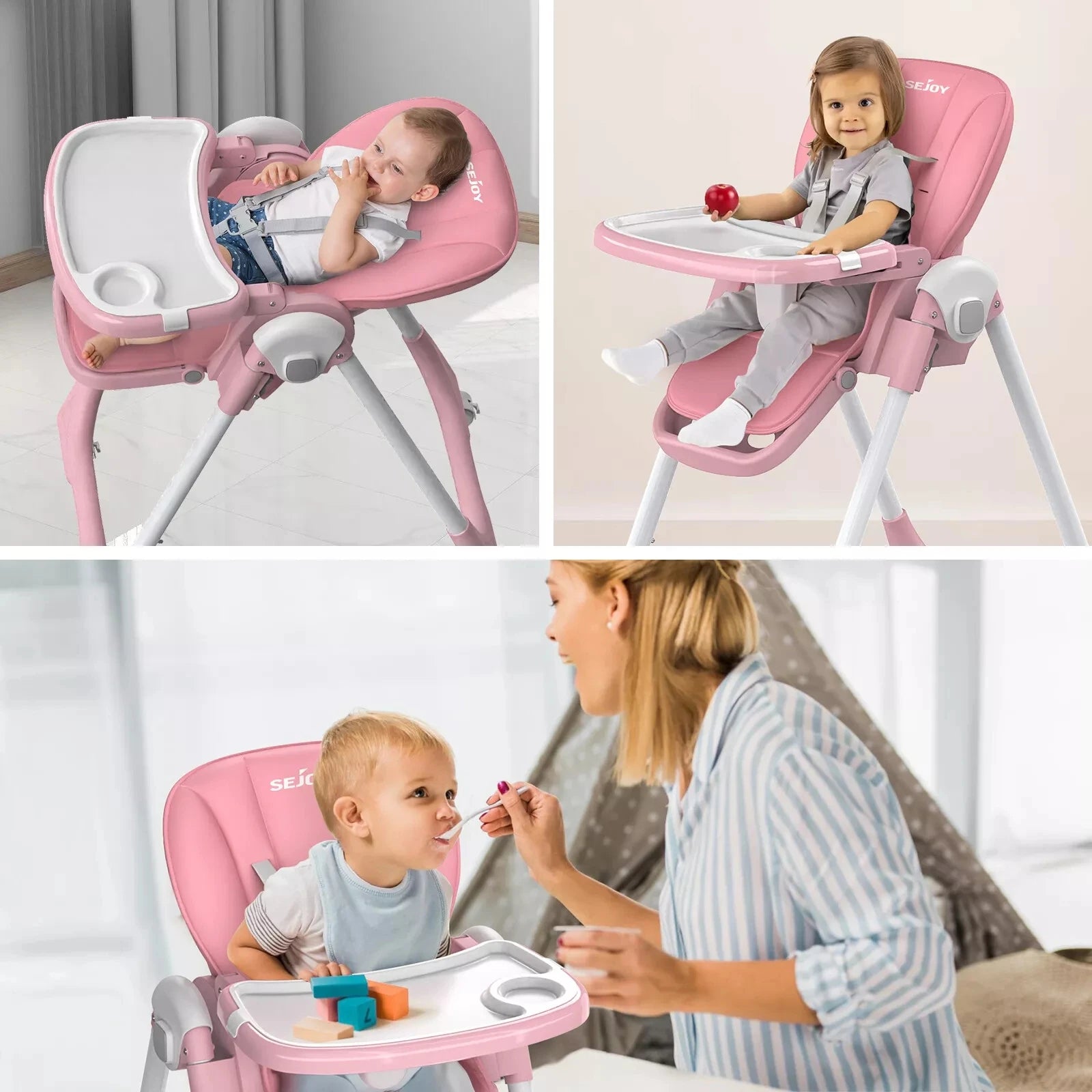 SEJOY Baby High Chair Infants Folding Convertible Removable Tray Adjustable Seat