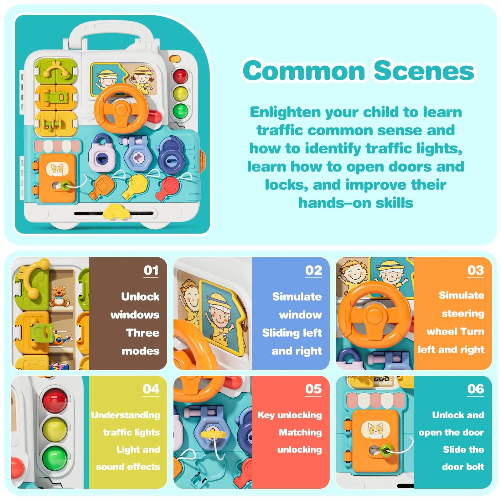 Introduce your child to the world of learning with the Toddler Musical Busy Board, an engaging and educational sensory toy designed for children aged 1 to 3. Perfect for both boys and girls, this portable Montessori gift promotes creativity and cognitive development while providing hours of fun. Made with non-toxic materials, this busy board ensures a safe exploration of various learning activities.