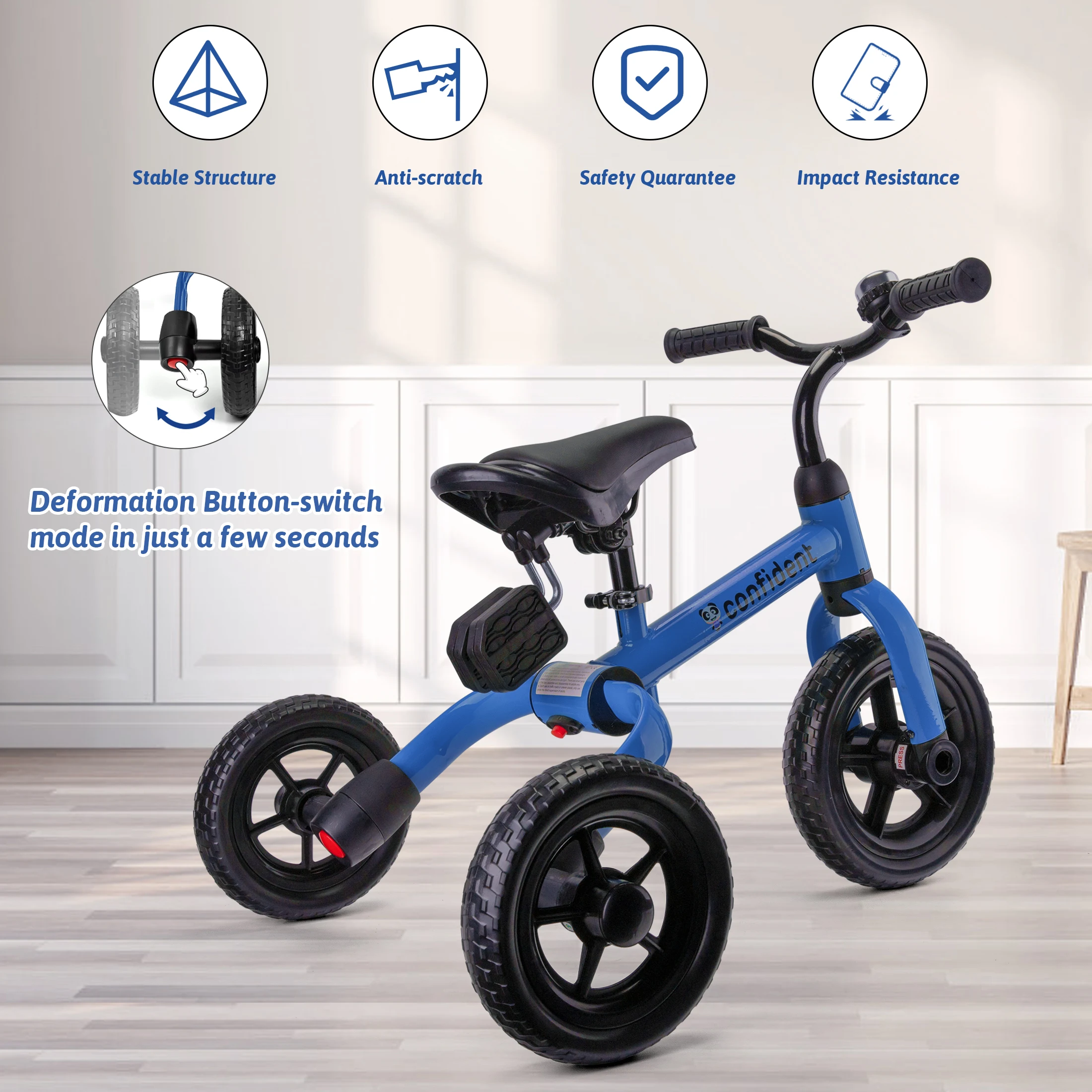 【Recommended Age】: Suitable for 2-5 years old kids. Pedal-less three-wheel training mode for 24-32 months toddler; Two-wheel balance bike and pedal tricycle mode for 2-5 years old children. Meet different needs during your kids' growth.