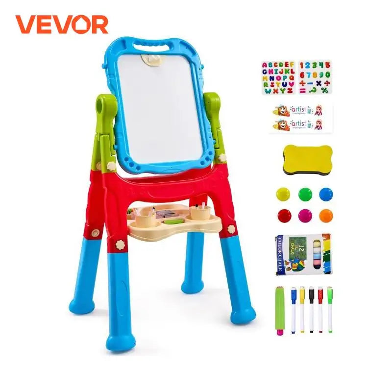 Unleash your child's creativity with the VEVOR Children Magnetic Drawing Board Painting Art Easel, a versatile and engaging drawing toys set designed for kids aged 3 and up. This colorful art easel features a dual-sided setup with a chalkboard and whiteboard, perfect for doodling, writing, and artistic exploration. Its innovative design allows your little artist to switch effortlessly between surfaces, making it an essential addition to both home and classroom environments.